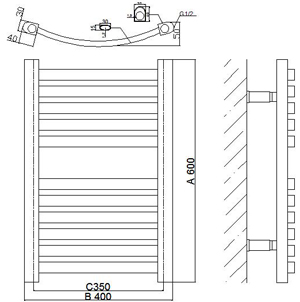 Plastic-coated oval towel radiator Model : YP1200×500 Material : Low carbon steel Guarantee : 5 years Horizontal tube : 30×15mm Vertical tube : 30×40mm