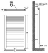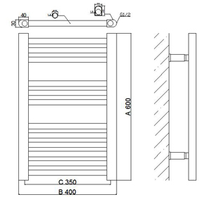 Plastic-coated straight towel radiator Model : YE1200×500 Material : Low carbon steel Guarantee : 5 years Horizontal tube : Φ22 Vertical tube : 30×40mm